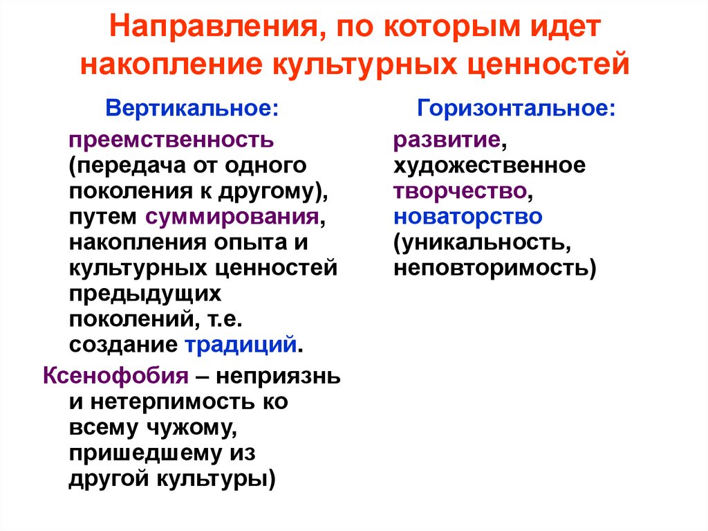 1. Направления, по которым идет накопление культурных ценностей