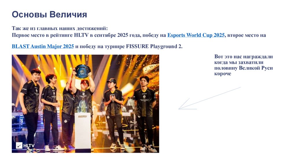 Первое место в рейтинге HLTV в сентябре 2025 года, победу на Esports World Cup 2025, второе место на