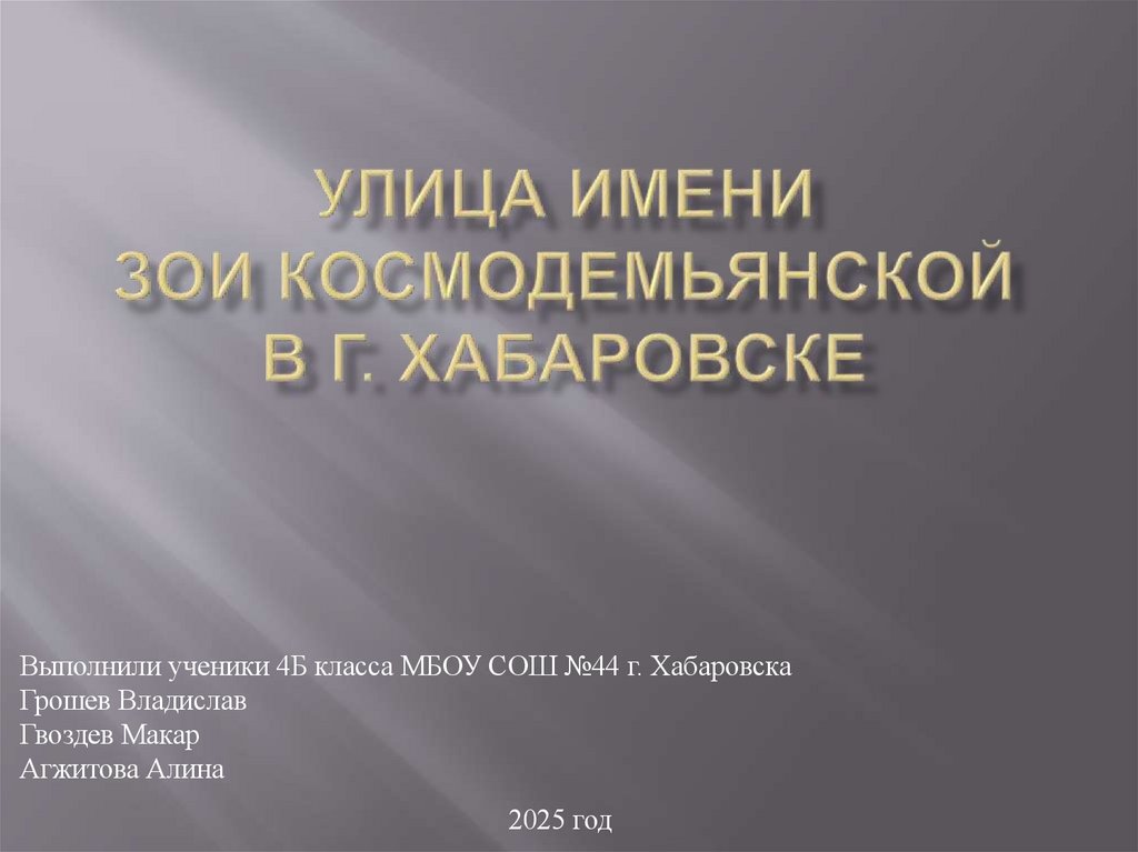 1. улица имени Зои Космодемьянской в г. хабаровске