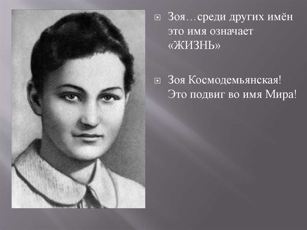 имя Героя Великой Отечественной войны – Зои Космодемьянской.
