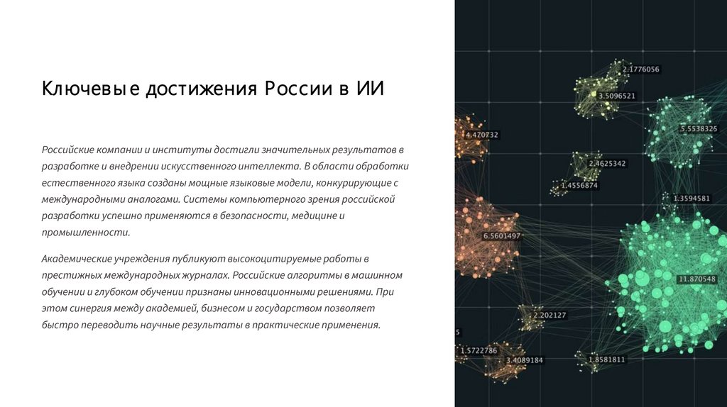 Ключев ы е достижения России в ИИРоссийские компании и институты достигли значительных результатов в