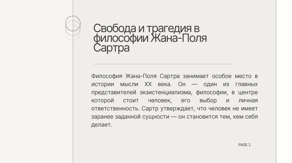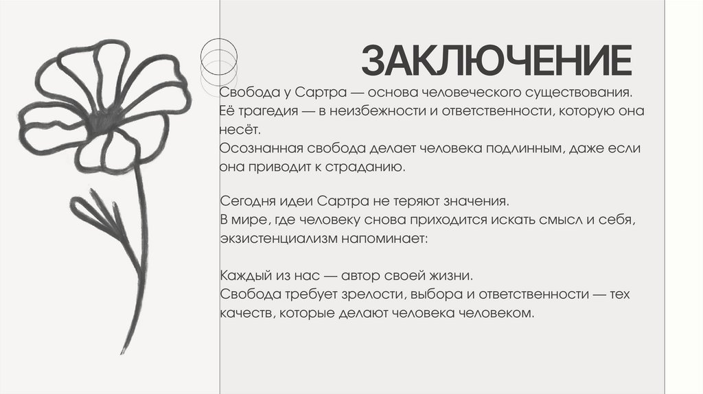 ЗАКЛЮЧЕНИЕСвобода у Сартра — основа человеческого существования.