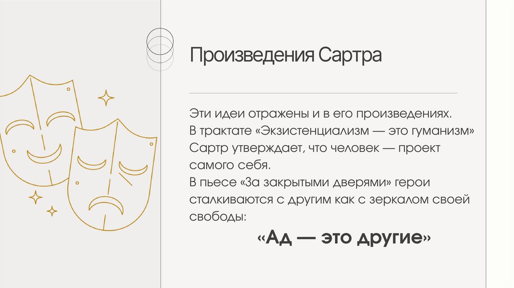 Произведения СартраЭти идеи отражены и в его произведениях.