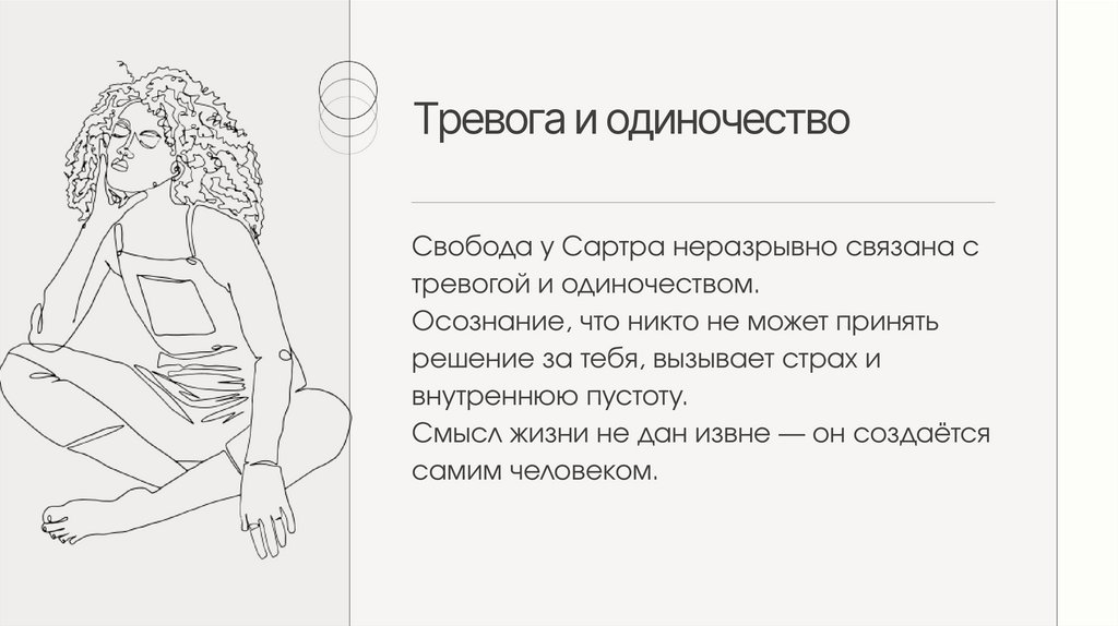 Тревога и одиночествоСвобода у Сартра неразрывно связана с