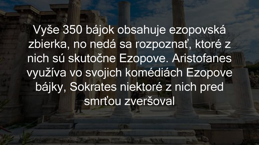 Vyše 350 bájok obsahuje ezopovskázbierka, no nedá sa rozpoznať, ktoré z