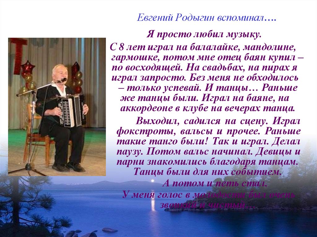 Евгений Родыгин вспоминал….Я просто любил музыку.