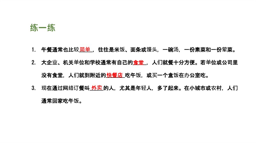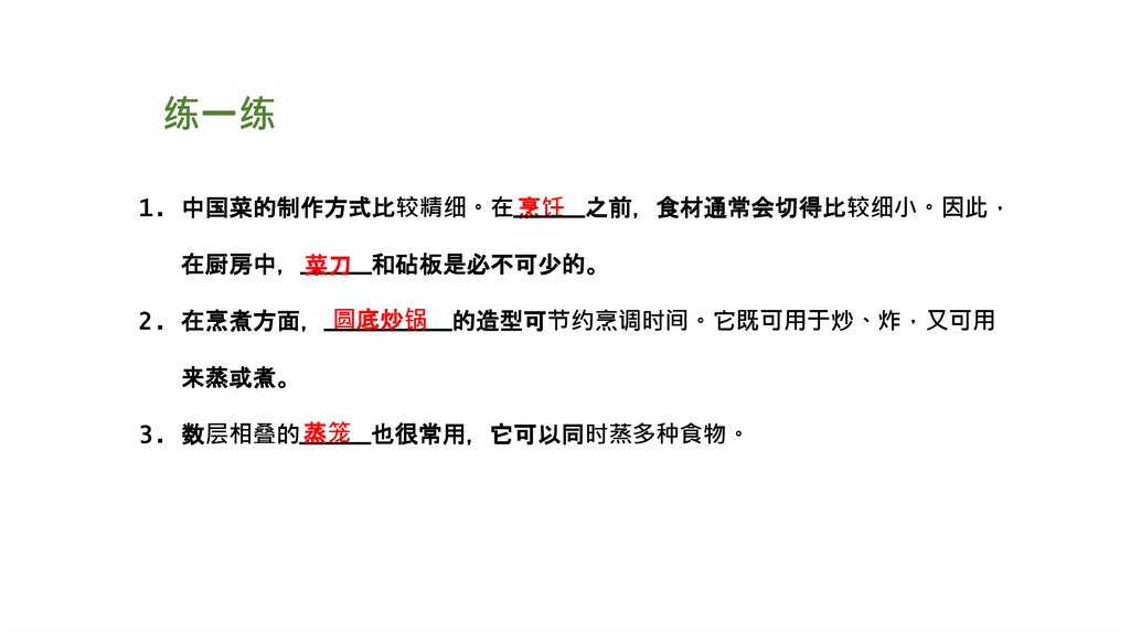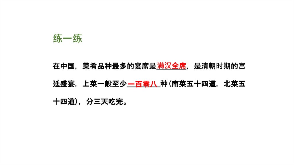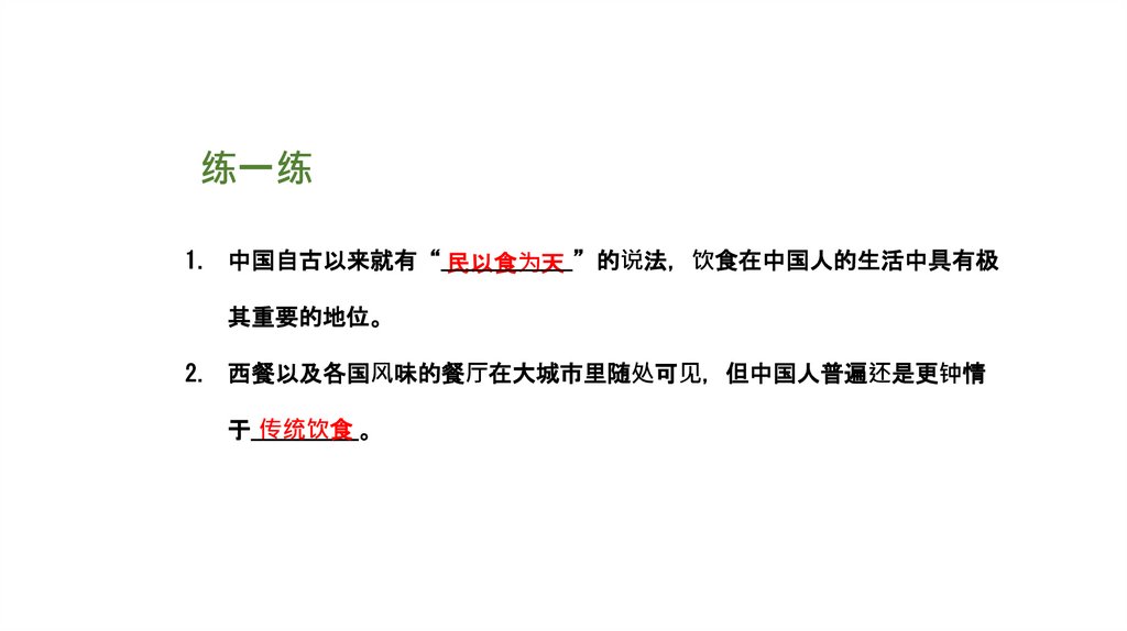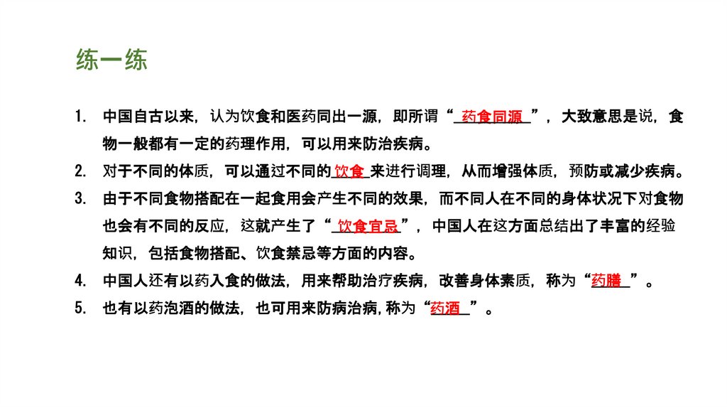练一练1. 中国自古以来 认为饮食和医药同出一源 即所谓“__________” 大致意思是说 食