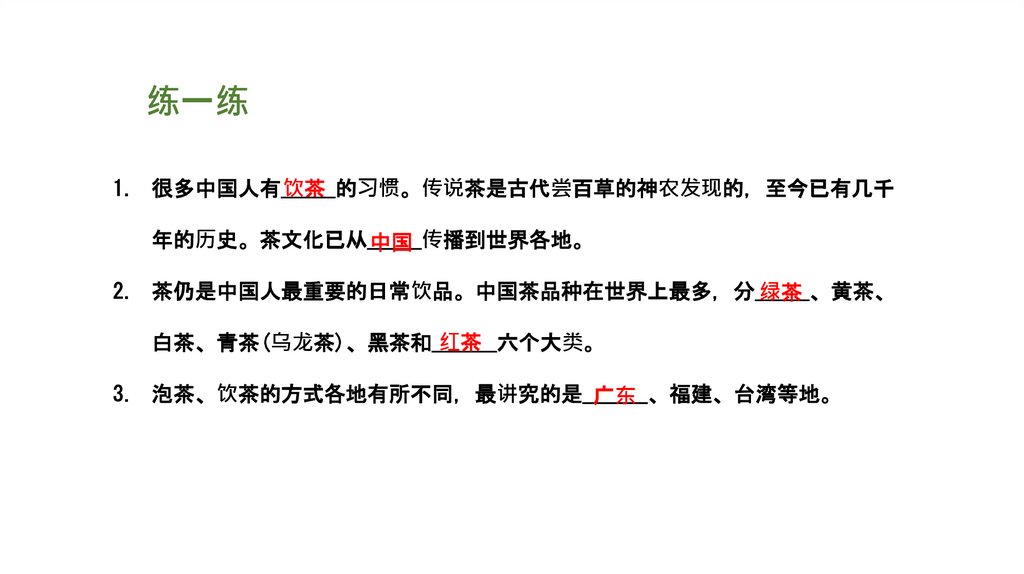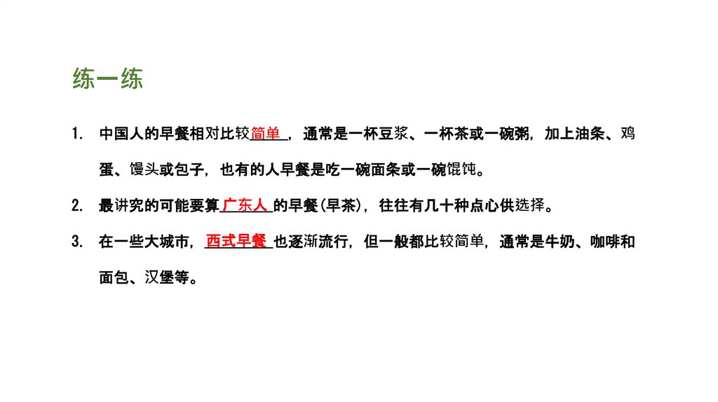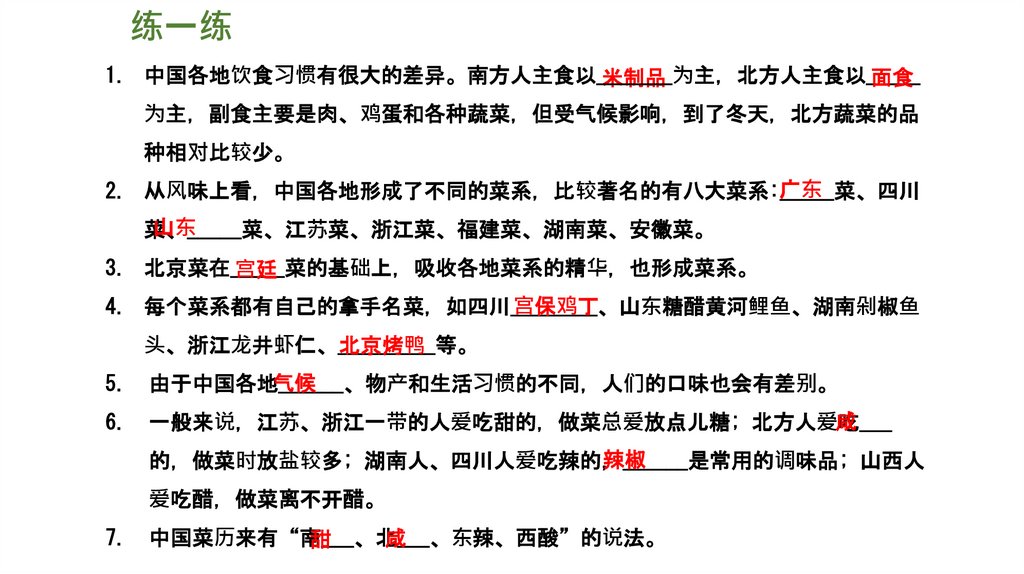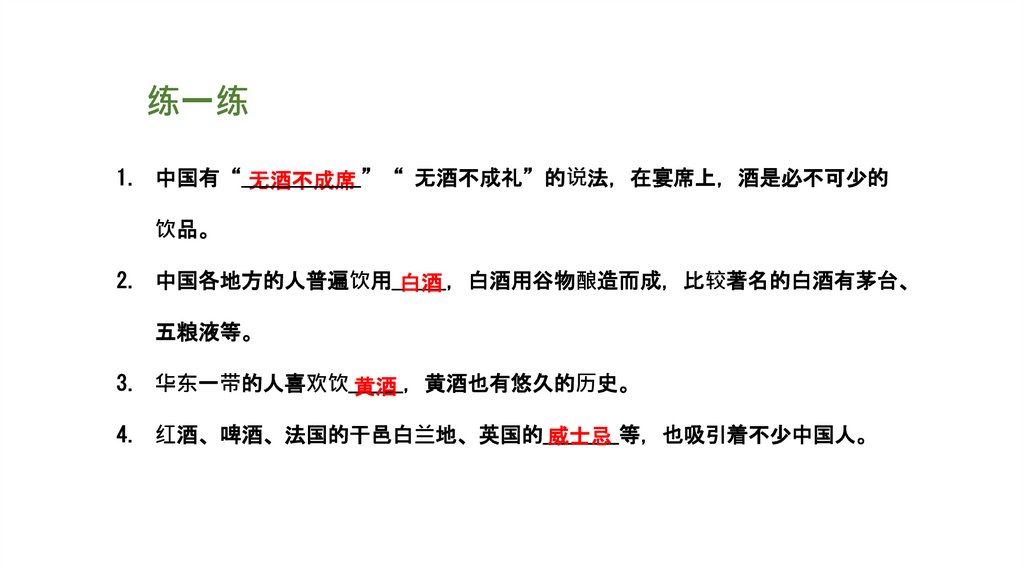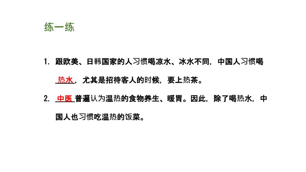 练一练1. 跟欧美、日韩国家的人习惯喝凉水、冰水不同 中国人习惯喝