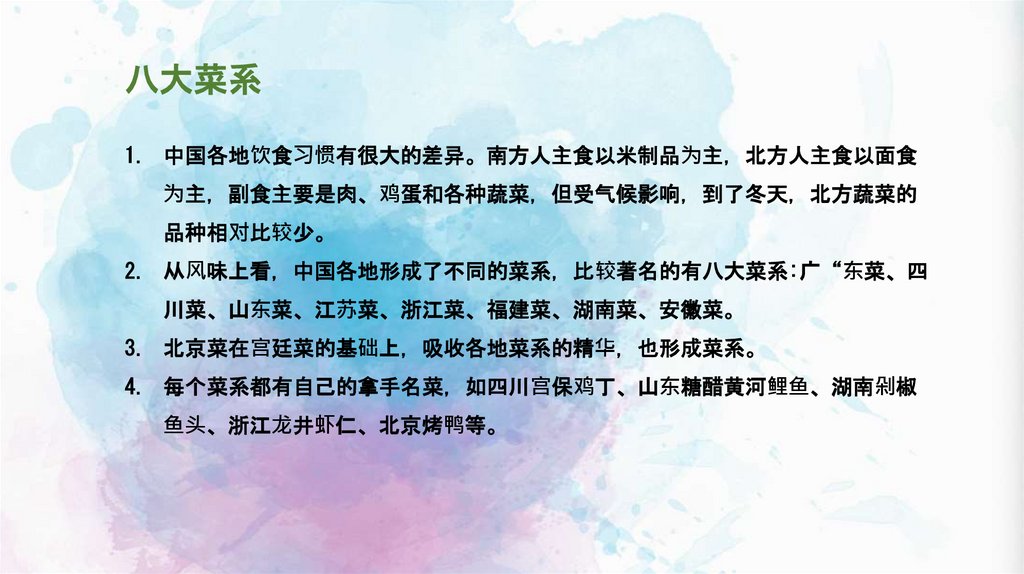 2. 对于不同的体质 可以通过不同的饮食来进行调理 从而增强体质 预防或减少疾病。