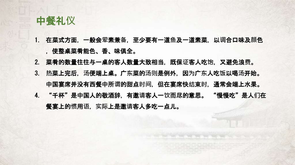4. 在用餐过程中 想好吃哪道菜再举起筷子夹菜 不能将筷子举起
