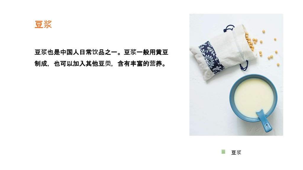豆浆豆浆也是中国人日常饮品之一。豆浆一般用黄豆