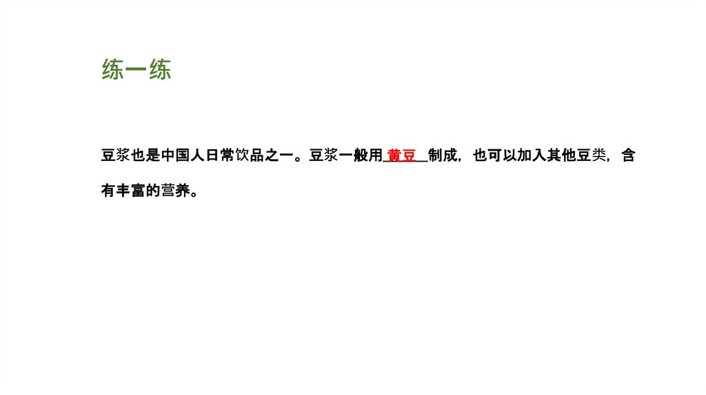 练一练豆浆也是中国人日常饮品之一。豆浆一般用______制成 也可以加入其他豆类 含