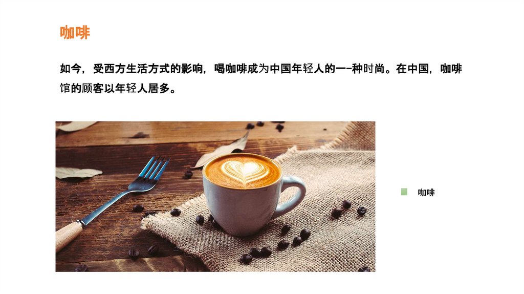 咖啡如今 受西方生活方式的影响 喝咖啡成为中国年轻人的一-种时尚。在中国 咖啡