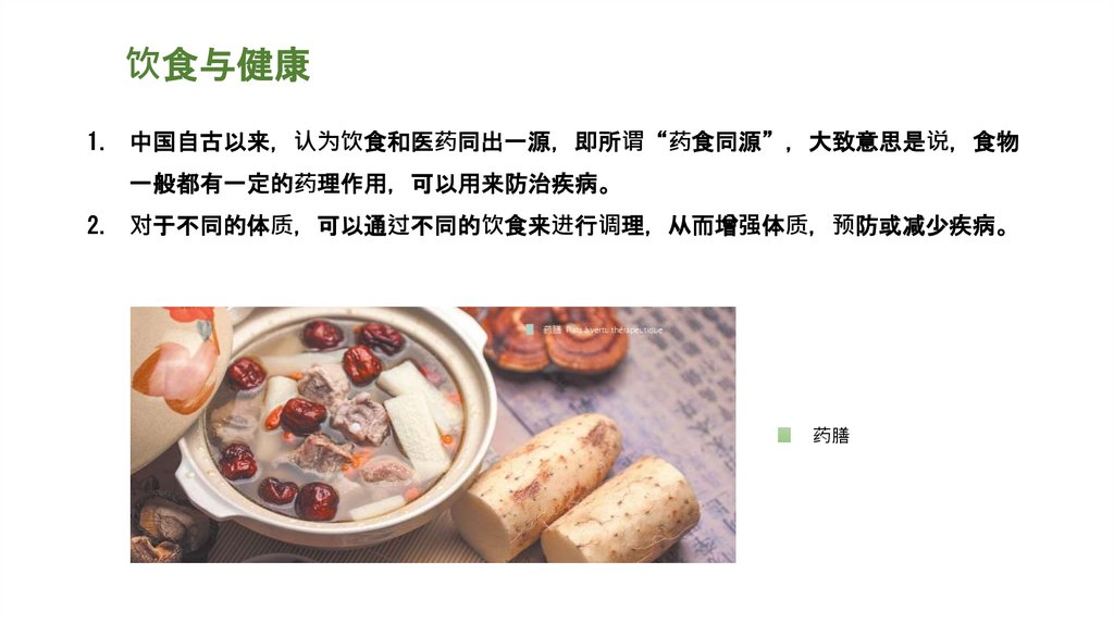 饮食与健康1. 中国自古以来 认为饮食和医药同出一源 即所谓“药食同源” 大致意思是说 食物
