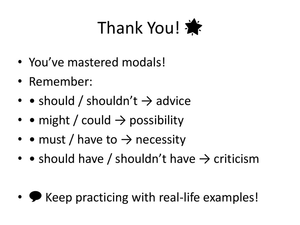 Modals: Advice, Possibility,