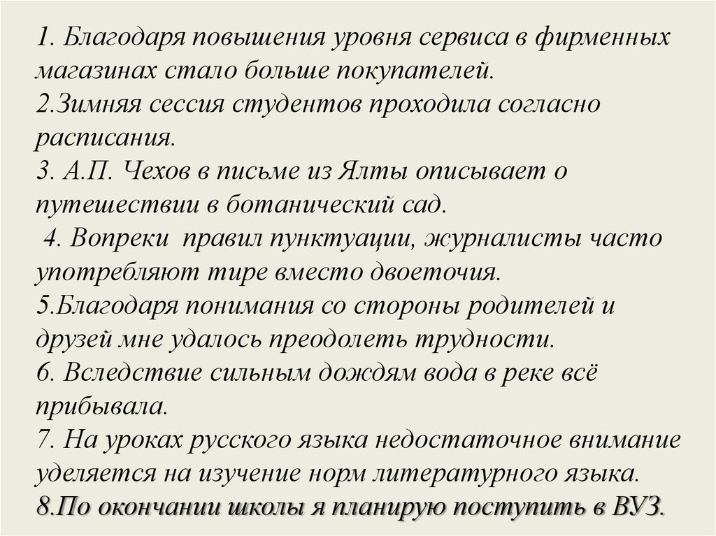 8. Неправильное употребление падежной формы имени существительного с производными предлогами