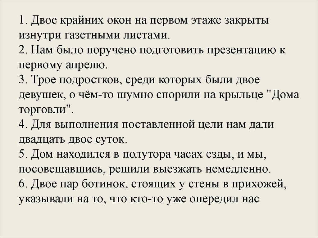 1. Находим предложение с числительным.2. Выясняем, есть ли ошибка в употреблении.