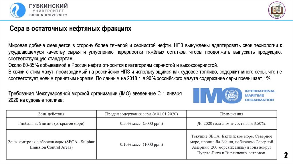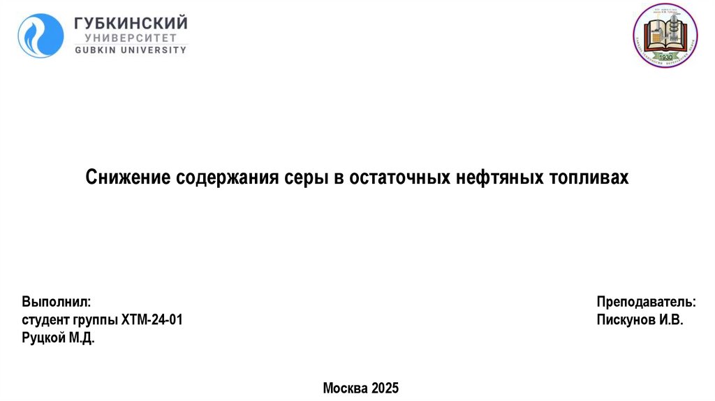 Снижение содержания серы в остаточных нефтяных топливахВыполнил: