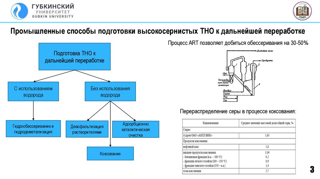 Промышленные способы подготовки высокосернистых ТНО к дальнейшей переработкеПроцесс ART позволяет добиться обессеривания на 30-50%