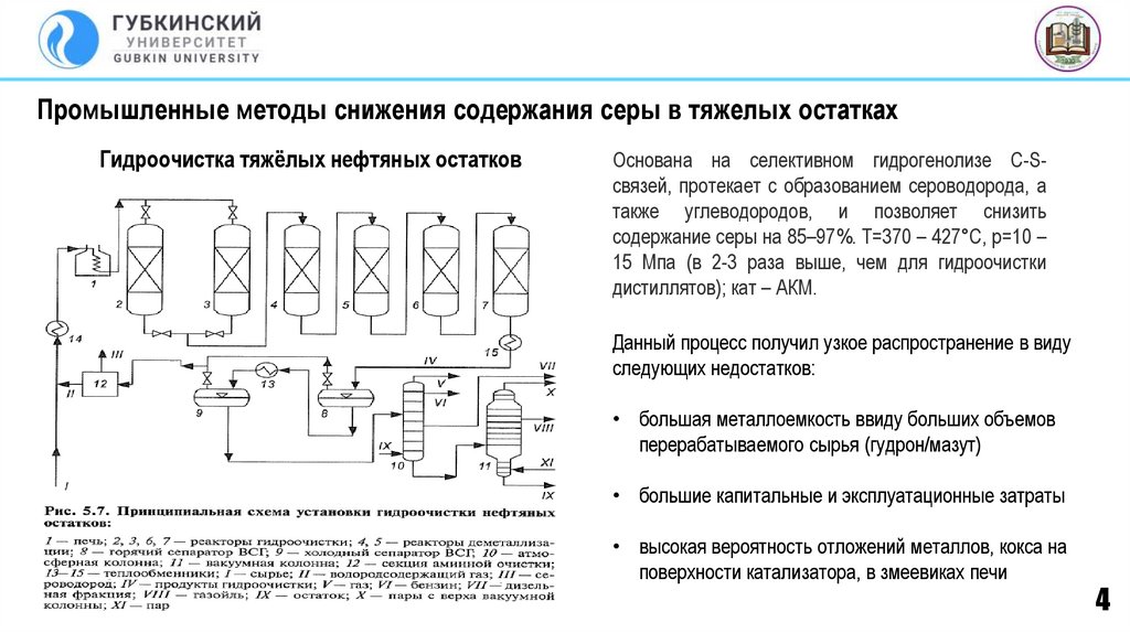 Промышленные методы снижения содержания серы в тяжелых остаткахГидроочистка тяжёлых нефтяных остатков