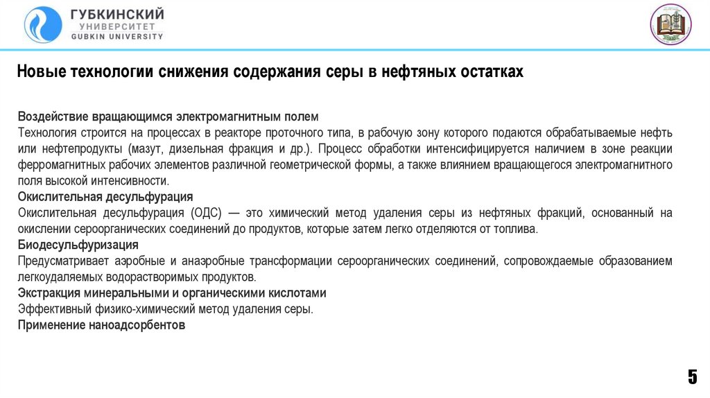 Новые технологии снижения содержания серы в нефтяных остаткахВоздействие вращающимся электромагнитным полем