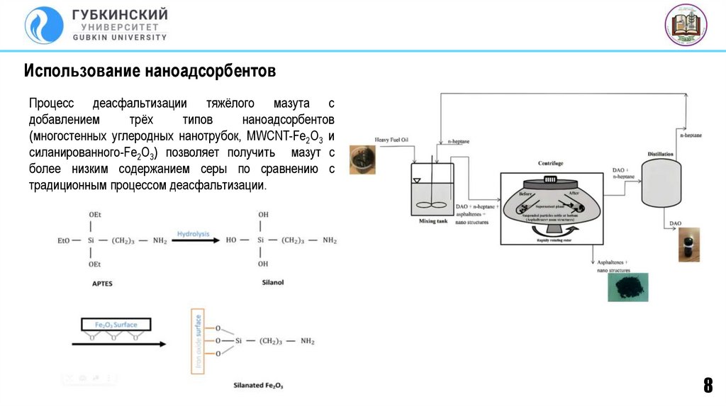 Использование наноадсорбентовПроцесс деасфальтизации тяжёлого мазута с