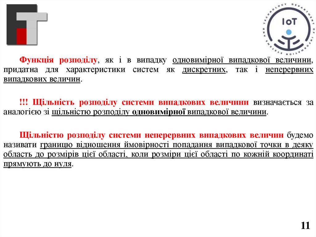 Функція розподілу, як і в випадку одновимірної випадкової величини,придатна для характеристики систем як дискретних, так і неперервних