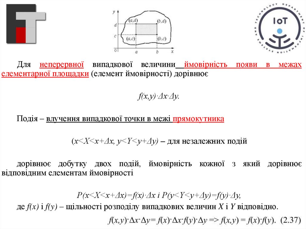 4. Ймовірність влучення точки системи двох величин (X, Y) до довільногопрямокутника зі сторонами, паралельними координатним осям (рис.нижче),