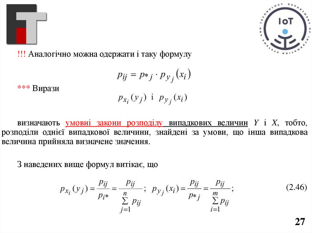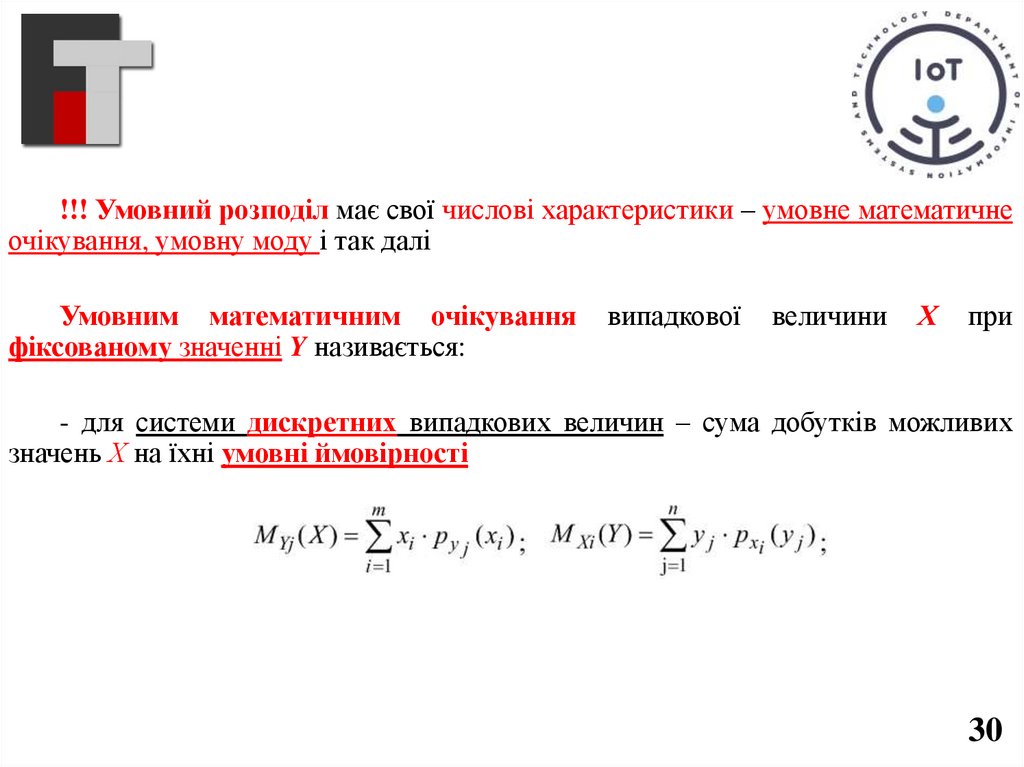 !!! Умовний розподіл має свої числові характеристики – умовне математичнеочікування, умовну моду і так далі