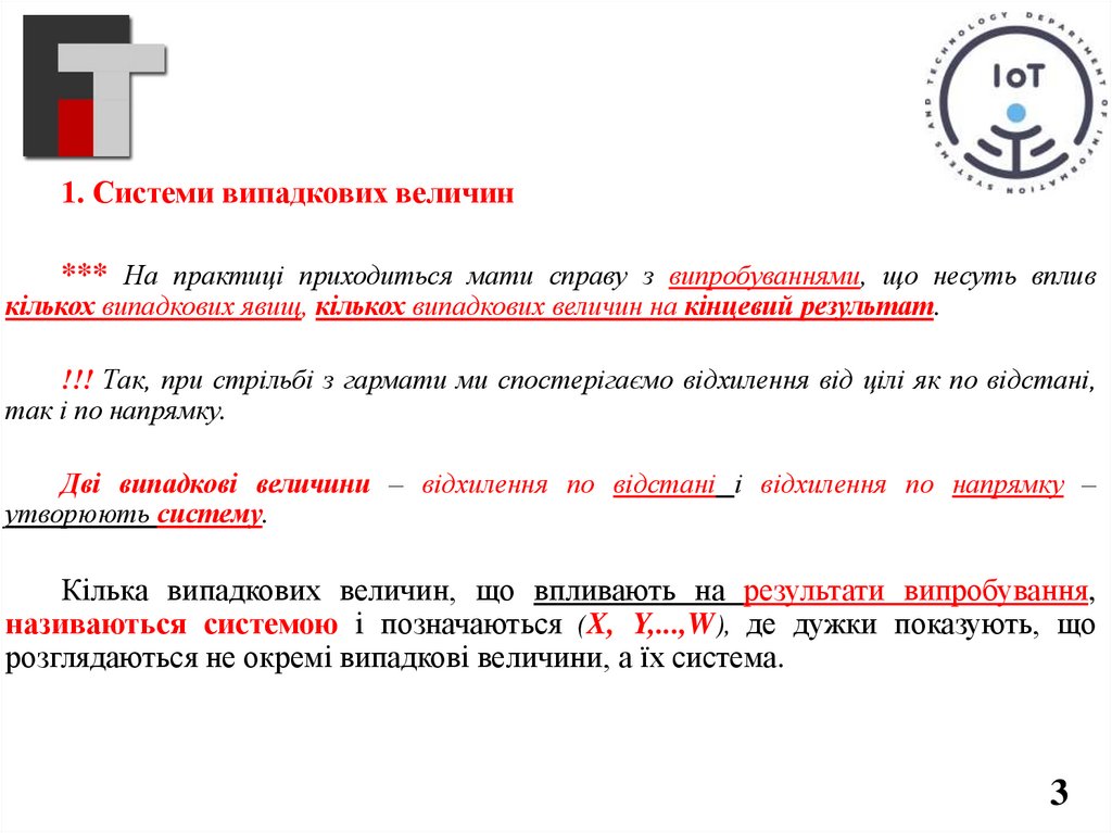 1. Системи випадкових величин*** На практиці приходиться мати справу з випробуваннями, що несуть вплив