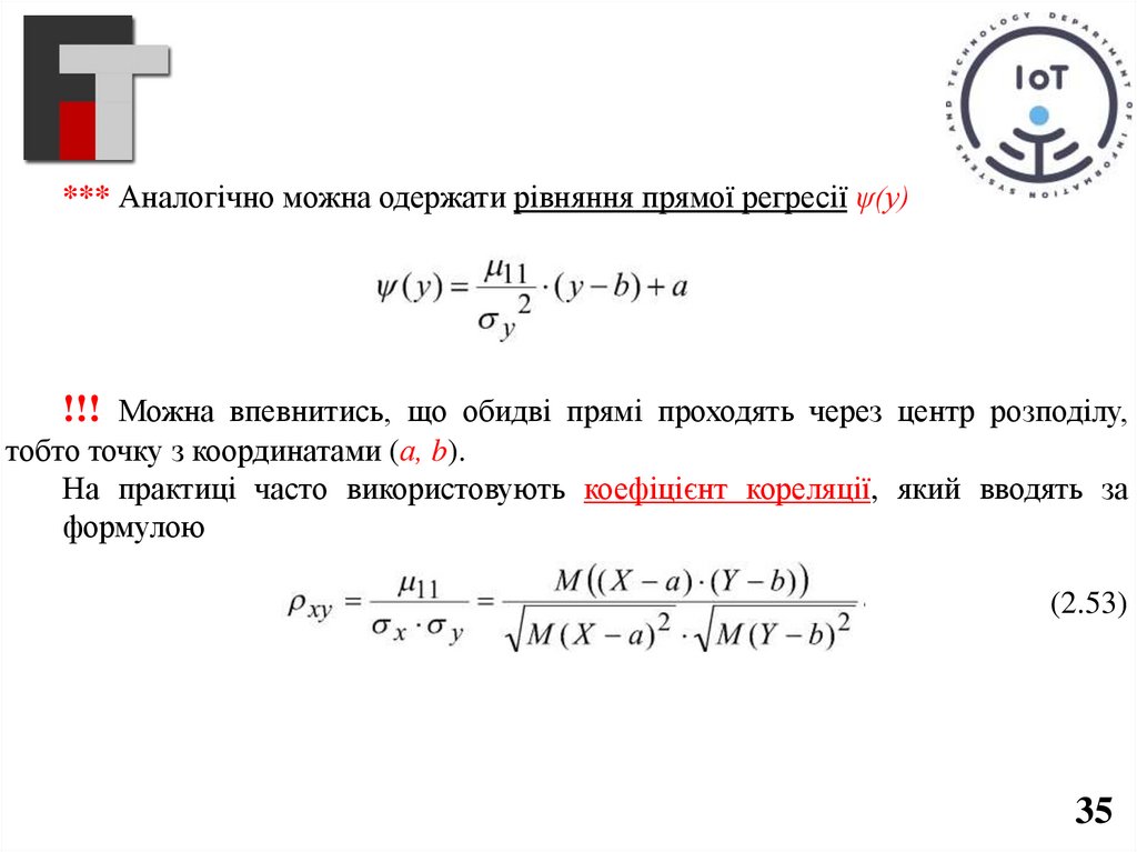 *** Аналогічно можна одержати рівняння прямої регресії ψ(у)(2.52)