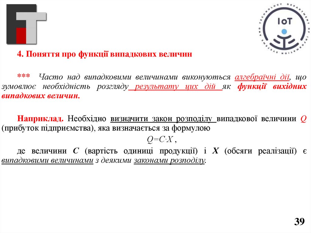 4. Поняття про функції випадкових величин*** Часто над випадковими величинами виконуються алгебраїчні дії, що