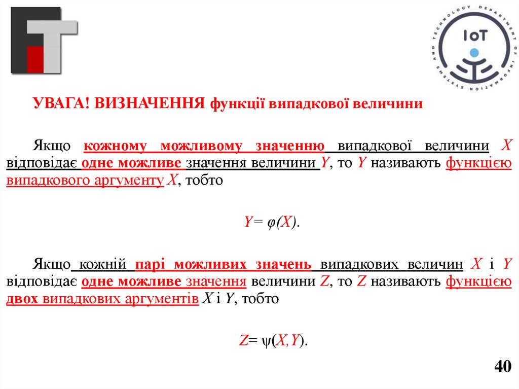 УВАГА! ВИЗНАЧЕННЯ функції випадкової величиниЯкщо кожному можливому значенню випадкової величини Х