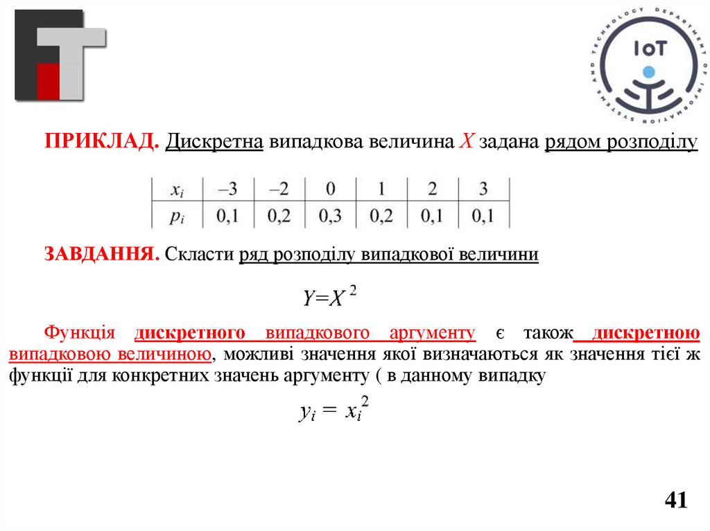 ПРИКЛАД. Дискретна випадкова величина Х задана рядом розподілуЗАВДАННЯ. Скласти ряд розподілу випадкової величини