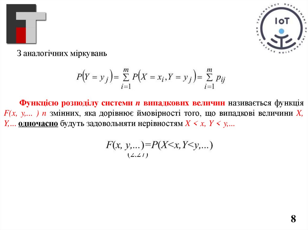 F(x, y,... ) n змінних, яка дорівнює ймовірності того, що випадкові величини X,