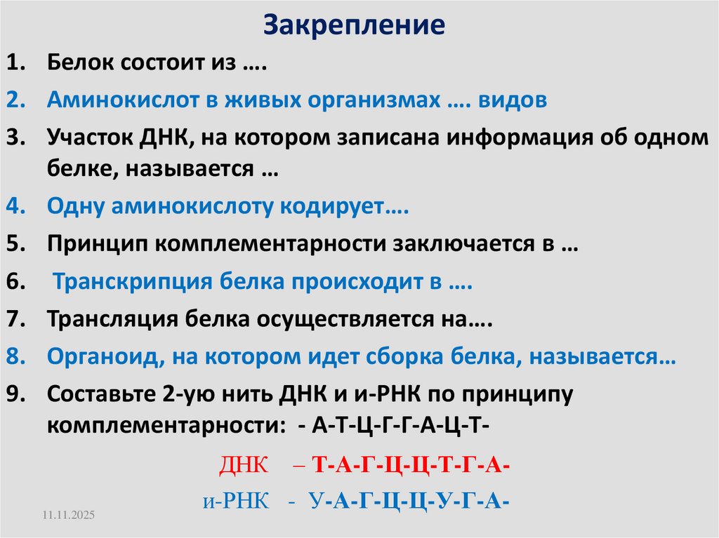 9. Составьте 2-ую нить ДНК и и-РНК по принципу