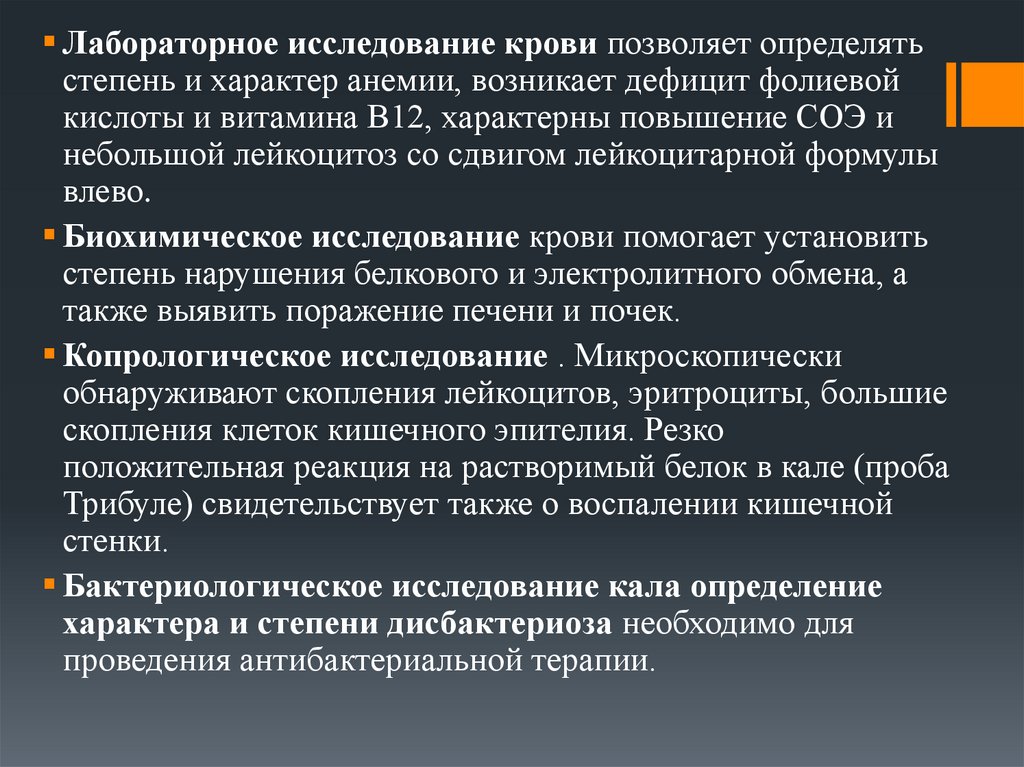 Лабораторное исследование крови позволяет определятьстепень и характер анемии, возникает дефицит фолиевой