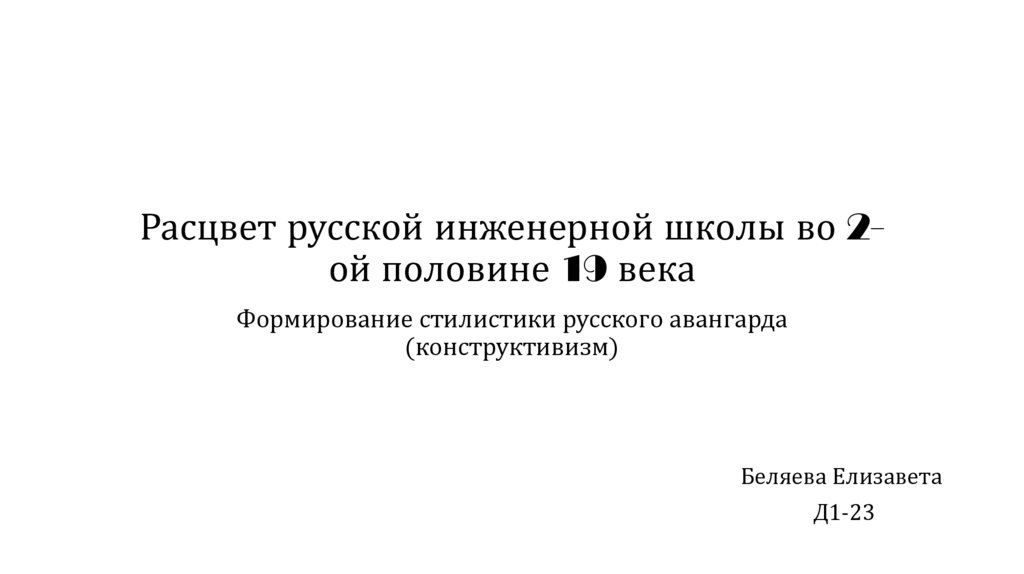 Расцвет русской инженерной школы во 2ой половине 19 векаФормирование стилистики русского авангарда