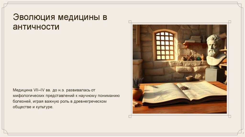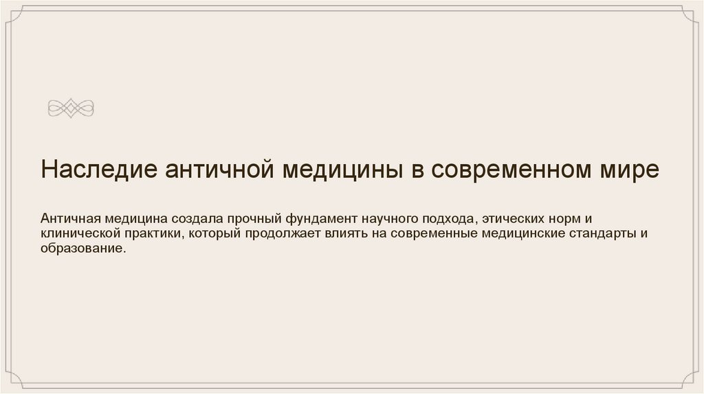 Наследие античной медицины в современном миреАнтичная медицина создала прочный фундамент научного подхода, этических норм и