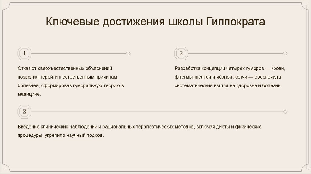Ключевые достижения школы ГиппократаОтказ от сверхъестественных объяснений