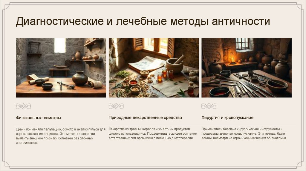 Диагностические и лечебные методы античностиФизикальные осмотры