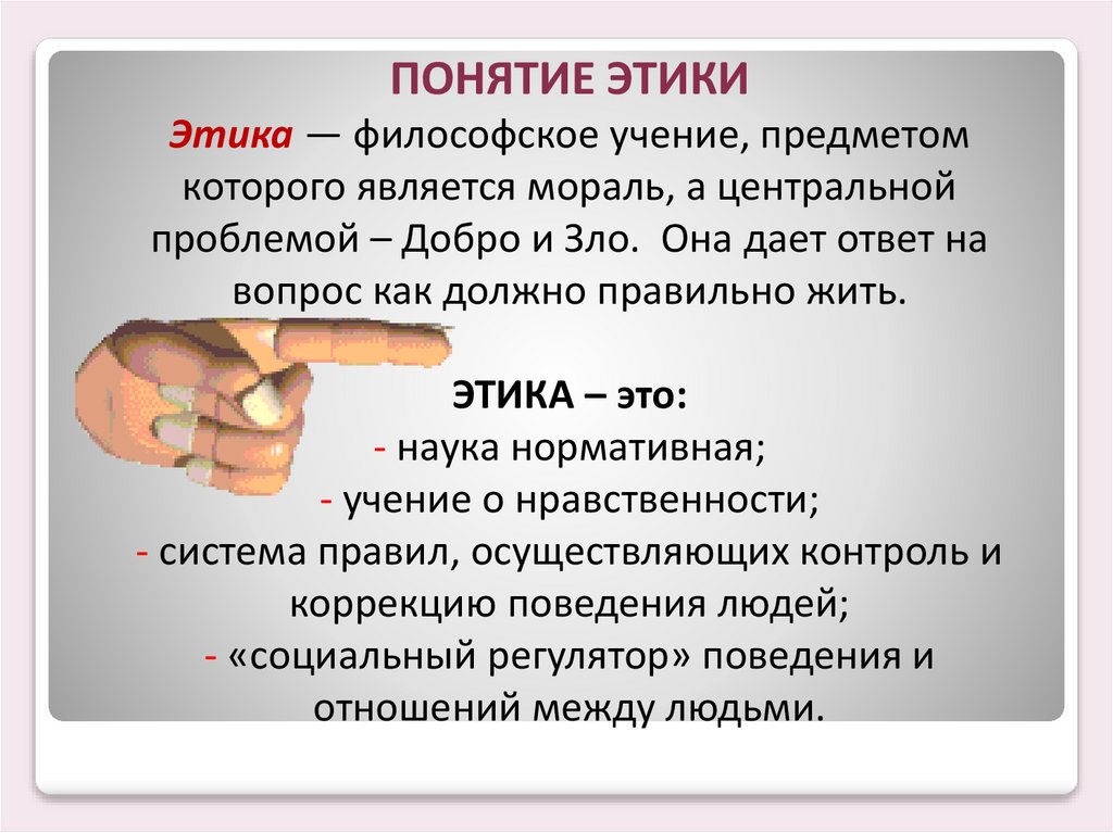 ПОНЯТИЕ ЭТИКИЭтика — философское учение, предметом