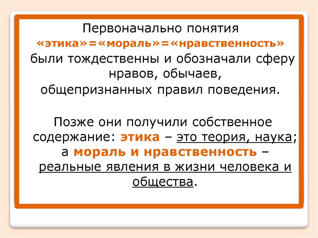 Первоначально понятия«этика»=«мораль»=«нравственность»