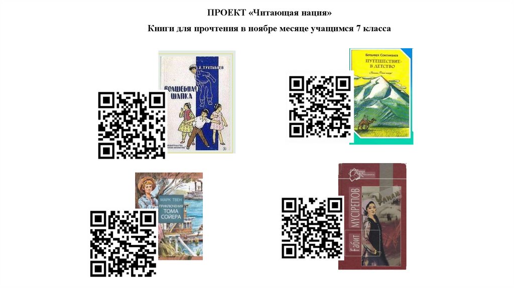 ПРОЕКТ «Читающая нация»Книги для прочтения в ноябре месяце учащимся 7 класса
