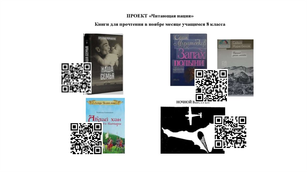 ПРОЕКТ «Читающая нация»Книги для прочтения в ноябре месяце учащимся 8 класса