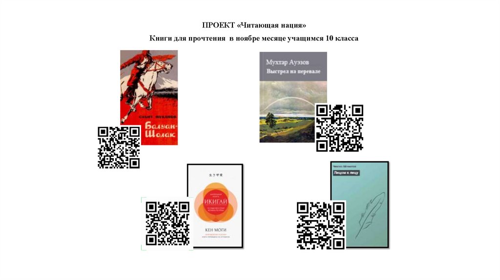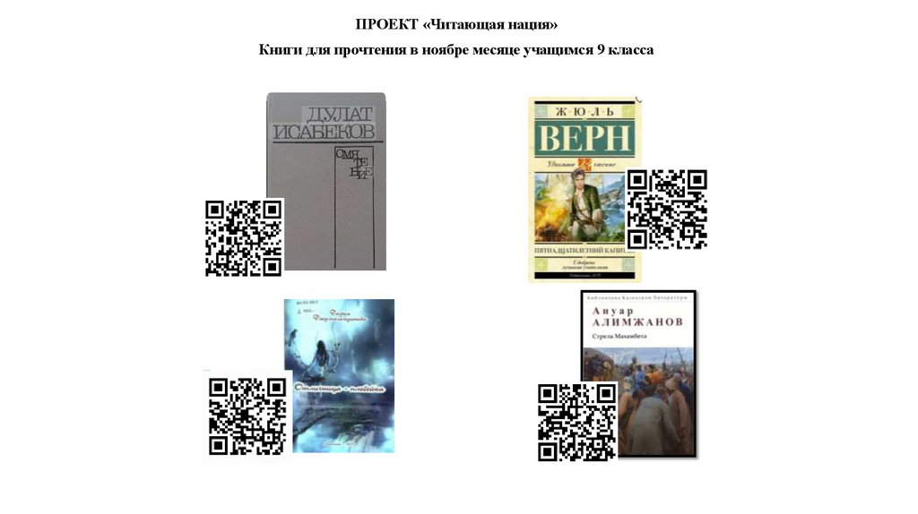ПРОЕКТ «Читающая нация»Книги для прочтения в ноябре месяце учащимся 10 класса