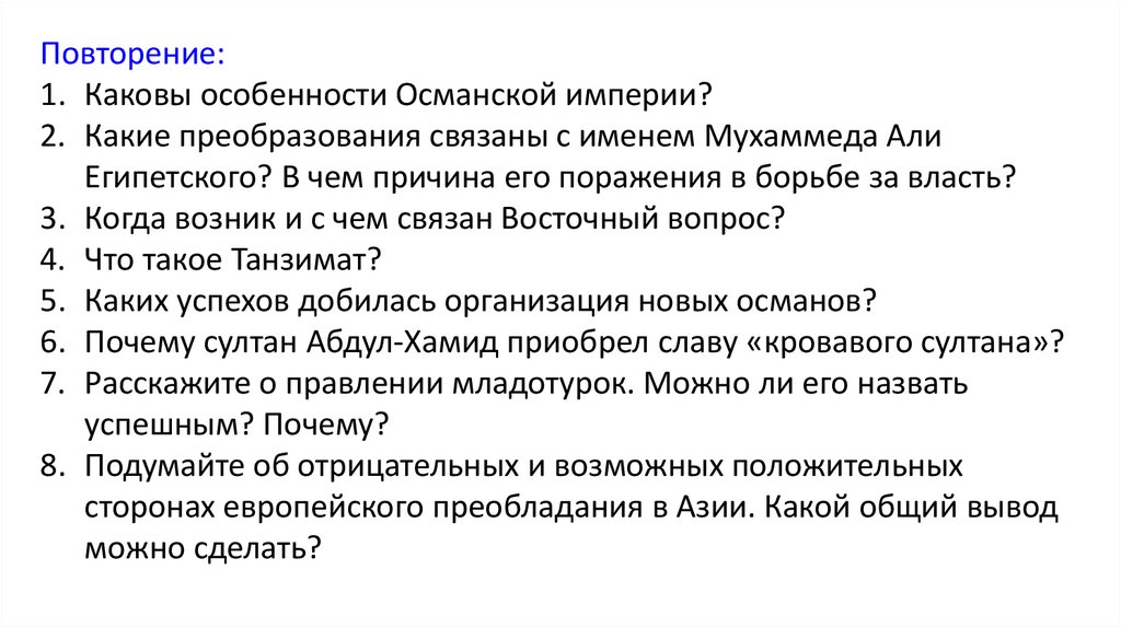 сторонах европейского преобладания в Азии. Какой общий вывод
