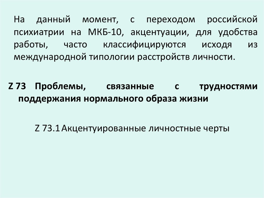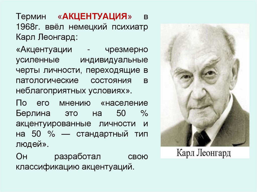 • АКЦЕНТУИРОВАННАЯ (40% взрослого населения) КРАЙНИЙ ВАРИАНТ НОРМЫ!!!