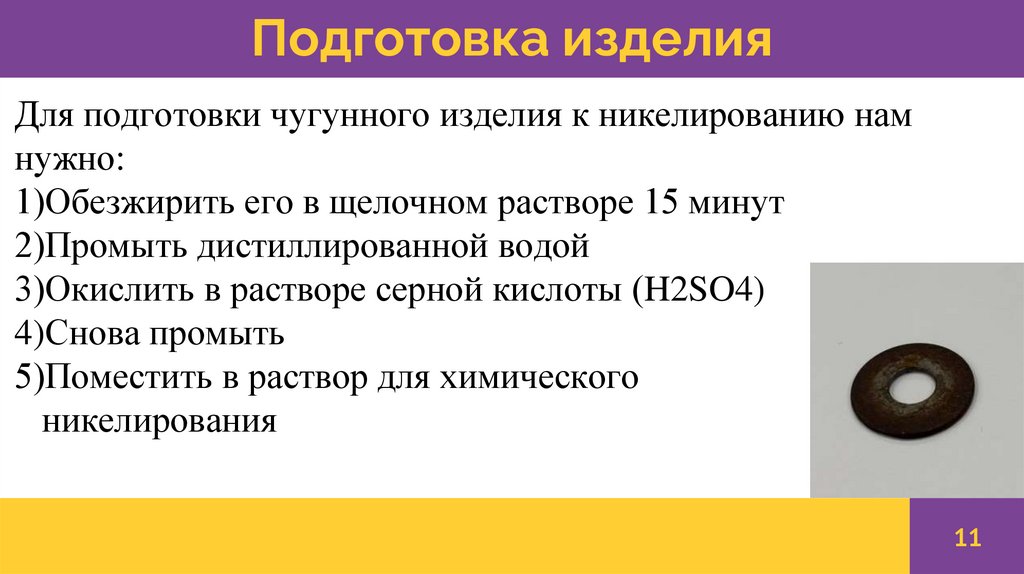 Подготовка изделияДля подготовки чугунного изделия к никелированию нам