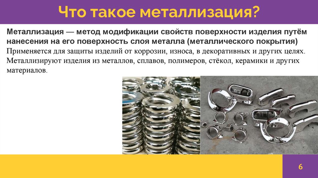 Что такое металлизация?Металлизация — метод модификации свойств поверхности изделия путём